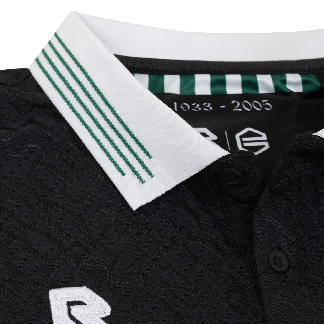 De poort van het stadion komt op diverse manieren terug in dit zwarte shirt. Deze is tekstueel in de stof geweven en zichtbaar in de nek. Daarnaast zijn de spijlers verwerkt in de kraag en de boordjes. De G uit ons logo staat voor FC Groningen: nu, maar zeker in het Oosterpark. Deze staat dan ook geborduurd op de borst van dit shirt. Op de heup is het Oosterparkstadion gevisualiseerd door middel van een gestikt label.